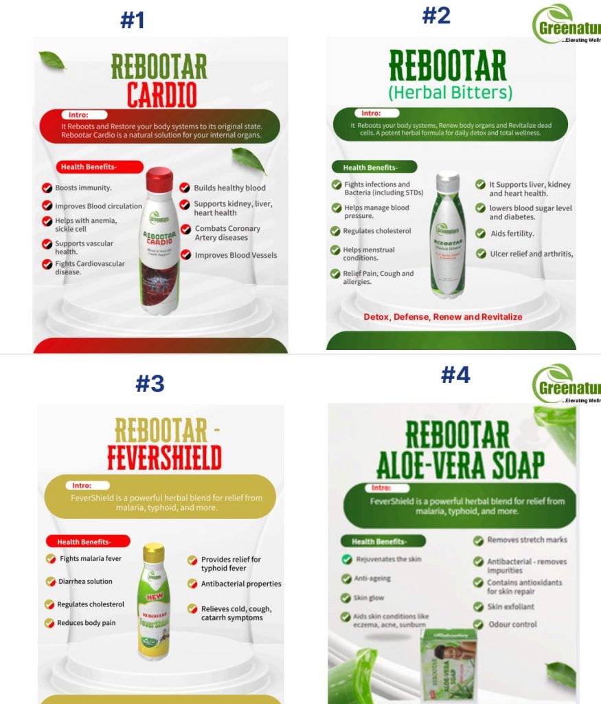 GREENATURE INTERNATIONAL HERBAL PRODUCT STARTED OFFICIALLY HERE IN NIGERIA AS A MULTI LEVEL MARKETING COMPANY IN NOVEMBER 2025 WITH THE FIRST FLAGSHIP PRODUCT CALLED REBOOTAR HERBAL BITTERS WITH LOTS OF HEALTH TESTIMONIES. YOU ALL REALLY NEED TO GET A BOTTLE FOR YOURSELVES.